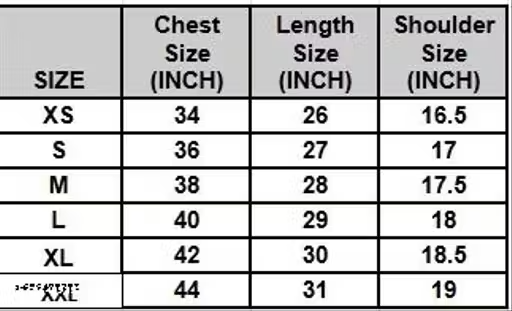 - XXL: Chest 44 in, Length 31 in